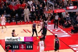 NBA常规赛,火箭123-122险胜热火。