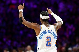 此役,亚历山大出战39分钟,投篮21中14,三分7中3,罚球4中4,拿到35分9篮板15助攻1抢断2盖帽。