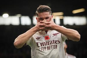 阿森纳:拉亚;本·怀特、萨利巴、加布里埃尔、卡拉菲奥里;苏维门迪、赖斯、厄德高;马杜埃凯、约克雷斯、马丁内利