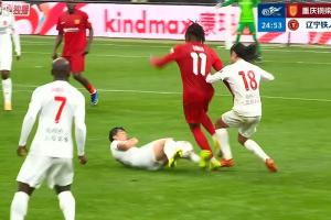 比赛第25分钟,严鼎皓铲球犯规,马宁出示黄牌。