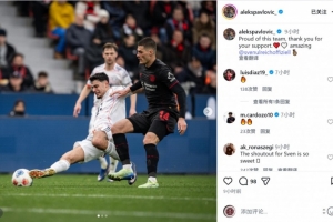 拜仁中场帕夫洛维奇社媒晒出比赛照片,配文:“为这支球队感到骄傲,感谢你们的支持,乌尔赖希表现太棒了。”