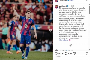 在社交媒体上,加维写道:经历了数月的痛苦与挑战,我终于迎来了今天的复出时刻。队友们和球迷们的关爱让我深受感动,也给了我继续前进的力量。感谢医生、理疗师、工作人员以及我的队友们,特别要感谢我的家人在这段时间里的陪伴。对于球迷朋友们的支持,我会用每一次训练和比赛中的全力以赴来回报你们,这是毋庸置疑的。加油巴萨!